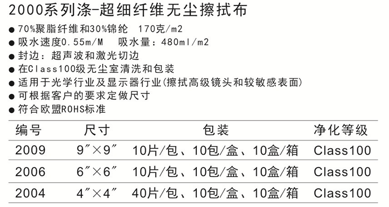 2000系列滌-超細纖維無塵擦拭布